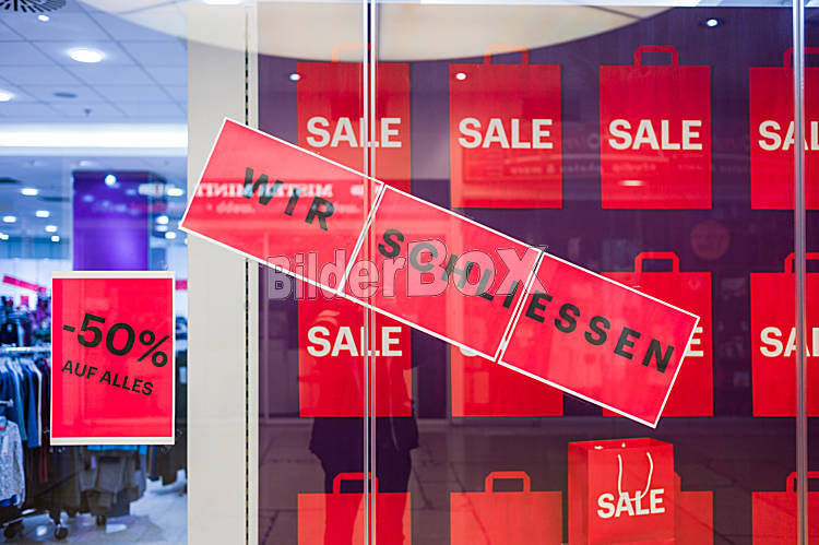 Beschreibung Ein Geschäft in einem Einkaufszentrum wird mangels Rentabilität geschlossen.
