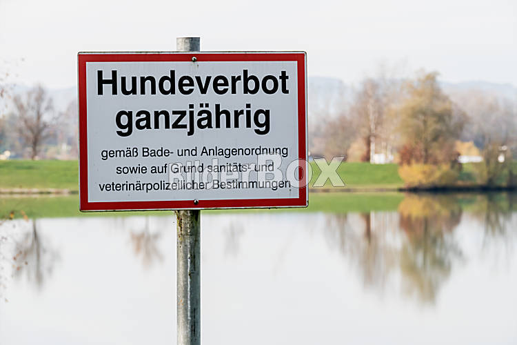 Beschreibung Schild Hundeverbot ganzjährig, Symbol für Hygiene, Verbote, Badeverbot