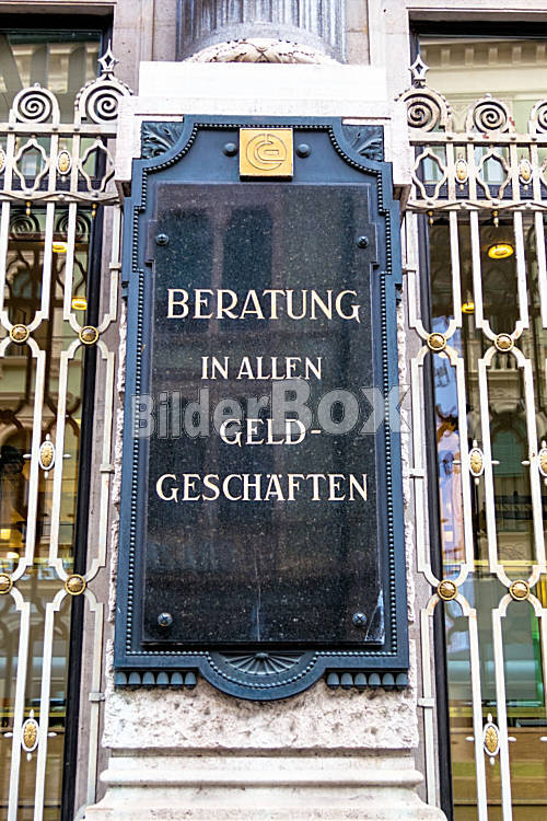 Beschreibung Schild Besorgung in allen Bankgeschäften, Symbolbild für Consulting und Bankwesen