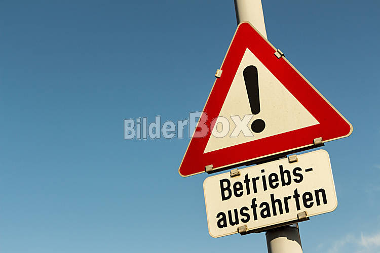 Beschreibung Verkehrszeichen Vorsicht Betriebsausfahrten vor einem Unternehmen