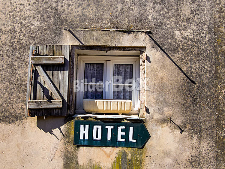 Beschreibung Ein Schild mit der Aufschrift Hotel mauf einem Haus.