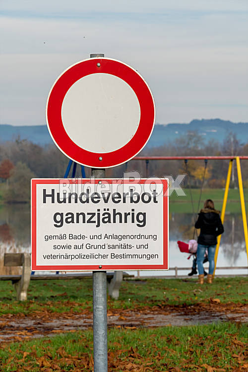 Beschreibung Schild Hundeverbot ganzjährig, Symbol für Verbote, Hygiene, Krankheitsüberträger