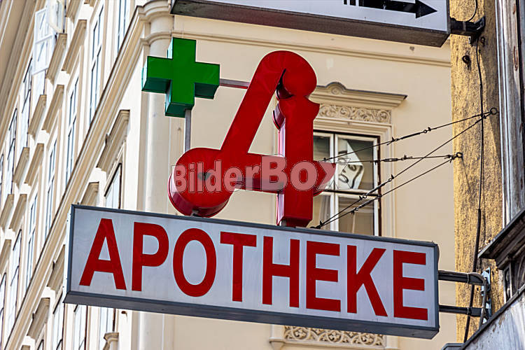 Beschreibung Schild Schrift Apotheke, Symbol für Gesundheitswesen, Krankenversicherung, Medikamente