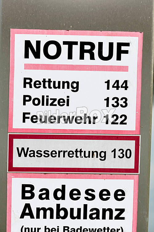 Beschreibung Schilder Notruf Wasserrettung, Symbol für Notruf, Rettung, Hilfe