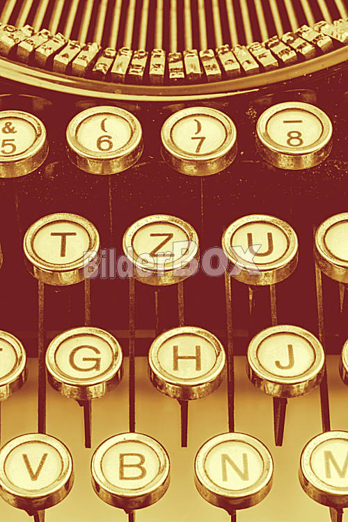 Beschreibung Tastatur einer alten Schreibmaschine. Symbolfoto für Kommunikation in früheren Zeiten