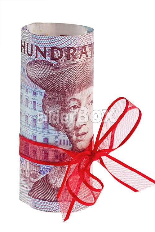 Beschreibung Schwedische Kronen, die Währung Schwedens. Mit roter Masche.