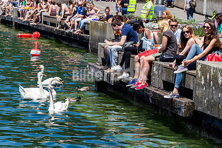 Beschreibung Schweiz, Zürich, Junge Leute sitzen am Zürichsee