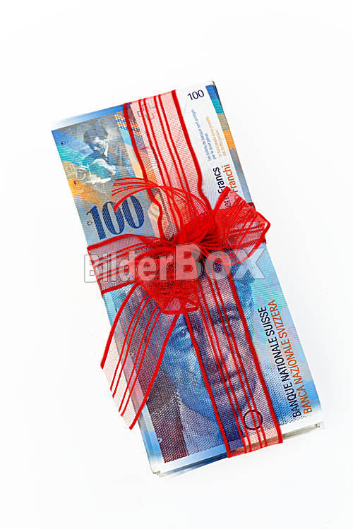 Beschreibung Schweizer Franken als Geld geschenk auf weißem Hintergrund