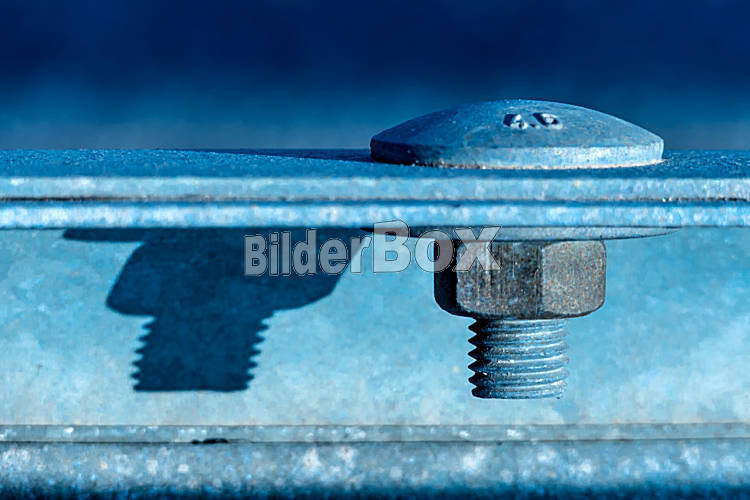 Beschreibung Sechskantschraube und Schraubenmutter, Symbol für Verbindung, Zuverlässigkeit, Zusammenarbeit