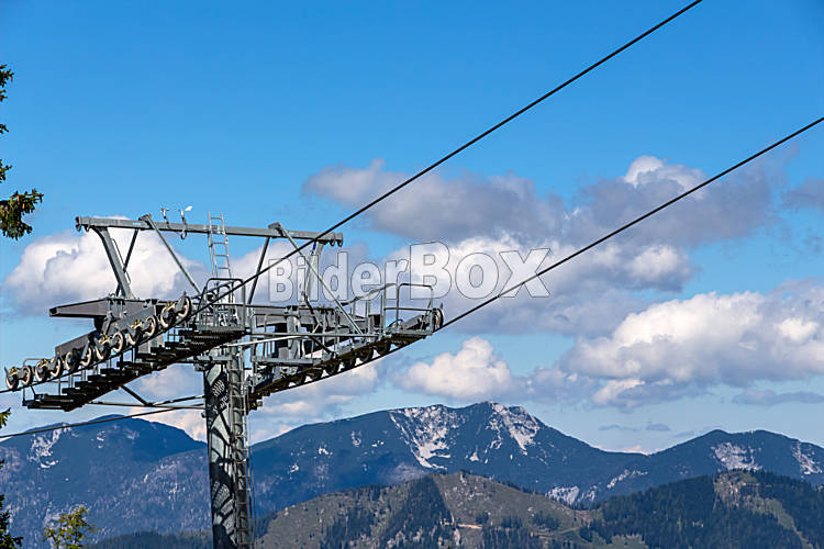 Beschreibung Sessellift und blauer Himmel, Symbol für Transport, Skiurlaub,