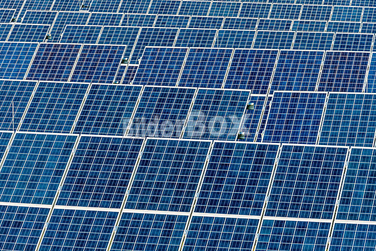 Beschreibung Panele eines Solarkraftwerkes. Sonnenenergie ist nachhaltug und umweltfreundlich.