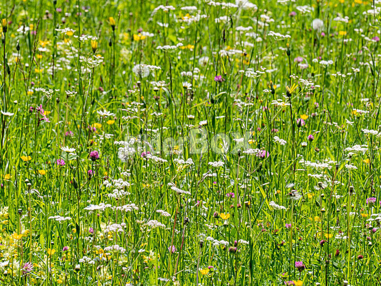 Beschreibung Sommerwiese mit Blumen in Weissensee, Kärnten, Österreich
