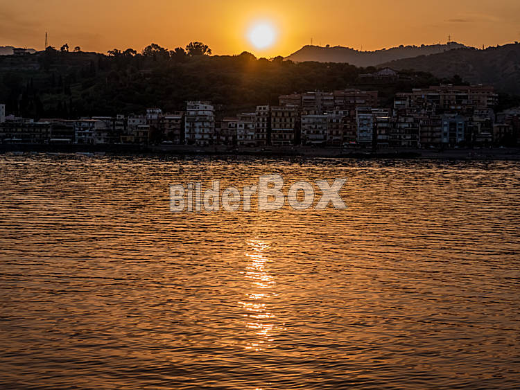 Beschreibung Im Wasser von einem See spiegelt sich bei einem Sonnuntergang die Sonne