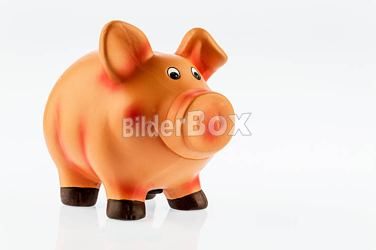 Beschreibung Ein Sparschwein auf weißem Hintergrund. Rentabilität bei der Geldanlage. Zinsen für Sparer