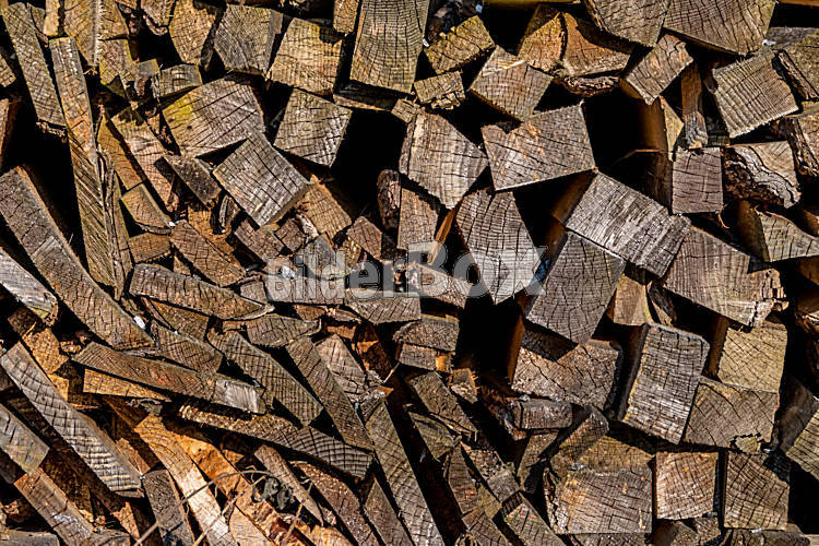 Beschreibung Stapel mit Feuerholz, Symbol für Brennstoff, nachwachsende Rohstoffe, Vorratshaltung