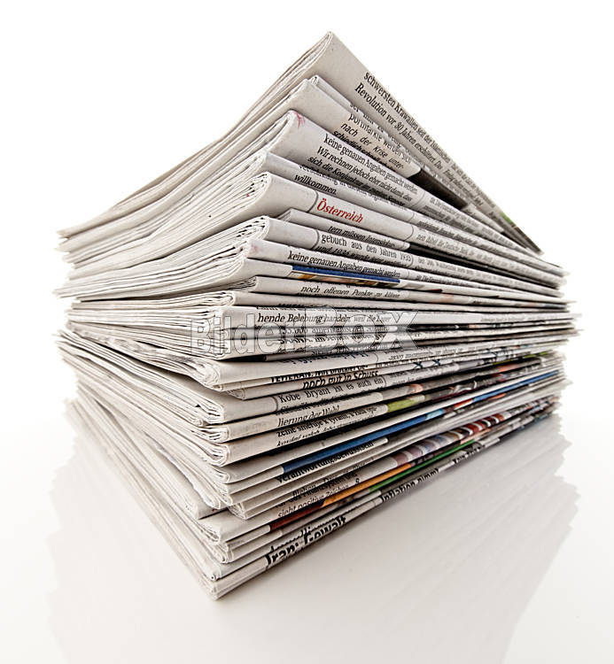 Beschreibung Alte Zeitungen und Zeitschriften auf einem Stapel