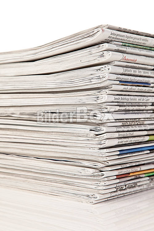 Beschreibung Alte Zeitungen und Zeitschriften auf einem Stapel