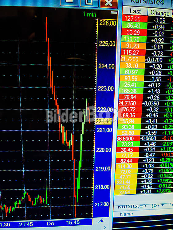Beschreibung An der Börse fällt der Aktienkurs. Stark sinkende Kurse von Wertpapieren. Verluste von Vermögen bei Aktien.