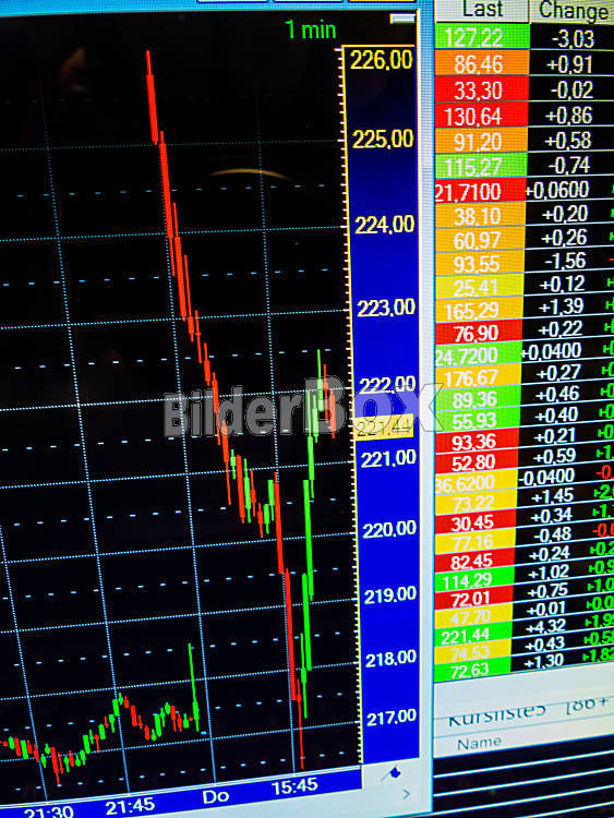 Beschreibung An der Börse fällt der Aktienkurs. Stark sinkende Kurse von Wertpapieren. Verluste von Vermögen bei Aktien.
