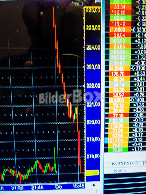 Beschreibung An der Börse fällt der Aktienkurs. Stark sinkende Kurse von Wertpapieren. Verluste von Vermögen bei Aktien.