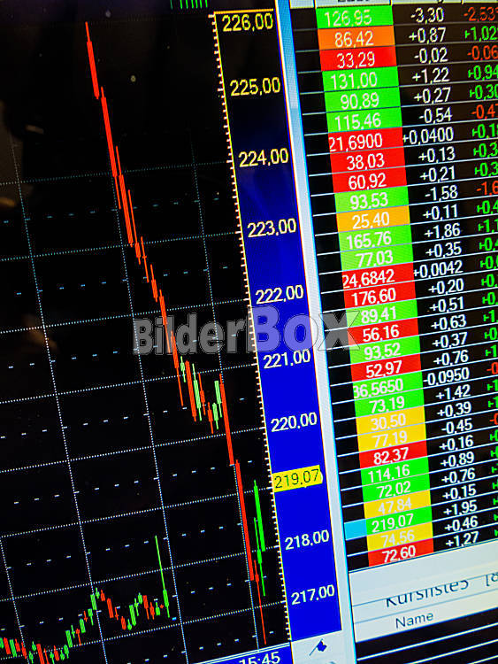 Beschreibung An der Börse fällt der Aktienkurs. Stark sinkende Kurse von Wertpapieren. Verluste von Vermögen bei Aktien.