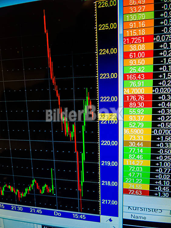 Beschreibung An der Börse fällt der Aktienkurs. Stark sinkende Kurse von Wertpapieren. Verluste von Vermögen bei Aktien.
