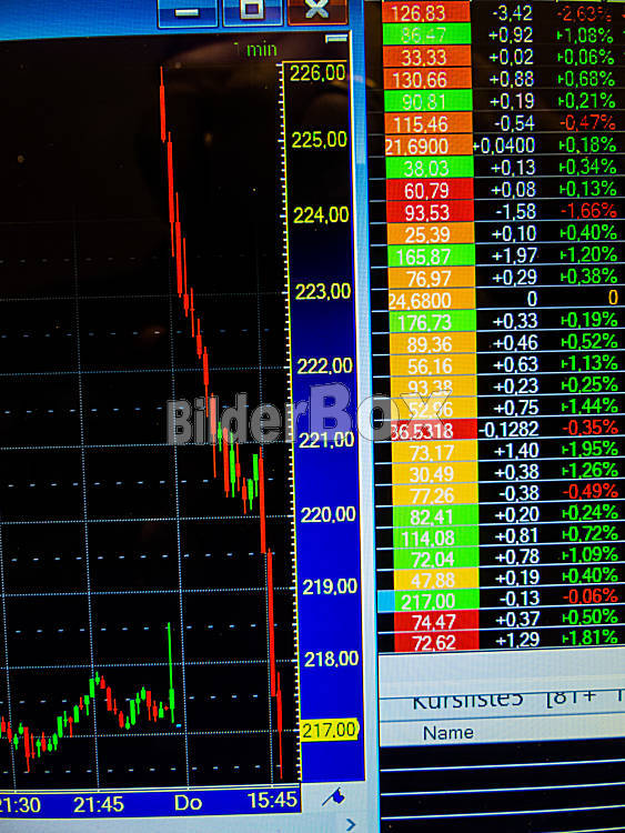 Beschreibung An der Börse fällt der Aktienkurs. Stark sinkende Kurse von Wertpapieren. Verluste von Vermögen bei Aktien.