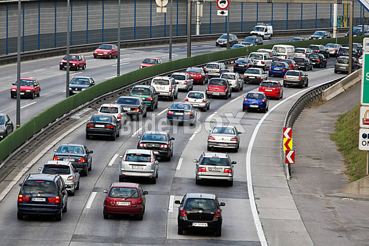 Stau im Verkehr mit Autos auf einer Autobahn Strasse