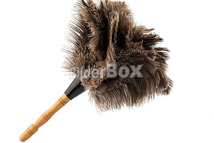 Beschreibung Ein Staubwedel vor weißem Hintergrund, Symbolfoto für Sauberkeit und Sorgfalt