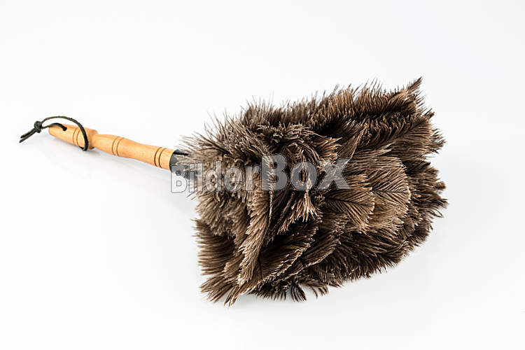 Beschreibung Ein Staubwedel vor weißem Hintergrund, Symbolfoto für Sauberkeit und Sorgfalt