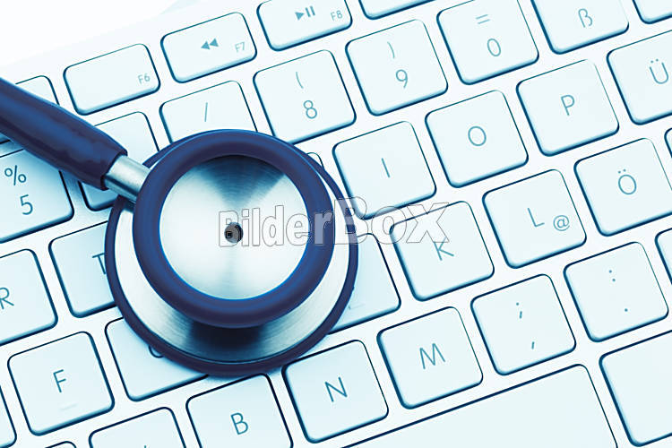 Beschreibung Ein Stethoskop und eine Tastatur eines Computers