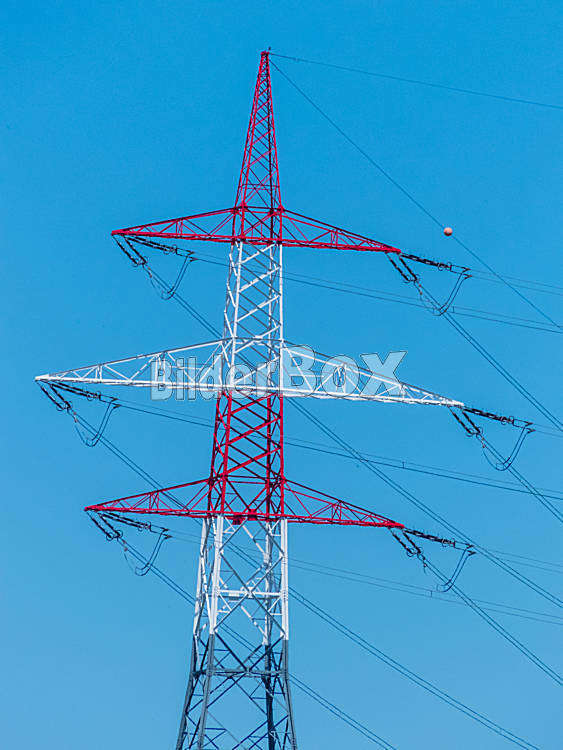 Beschreibung Masten einer Stromleitung. Hochspannungsmasten für elektrischen Strom.