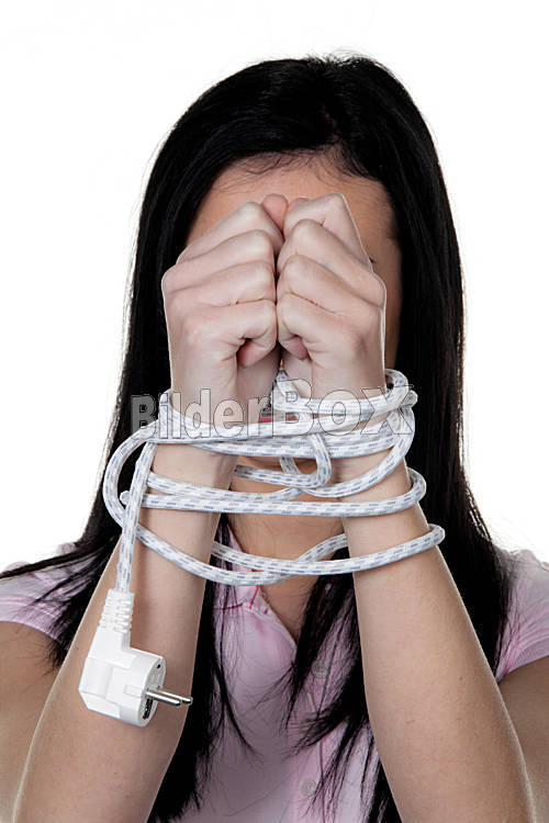 Strompreis. Hände mit Kabel und Stecker für Strom.