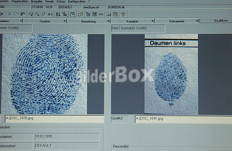 Beschreibung Symbolbild Fingerabdruck Copyright (2001) by BilderBox.com; Erwin Wodicka, A-4062 Thening. AGBs: www.bilderbox.com/agb.html ( in an im auf als einer and und beim mit einen einer einem + * -...