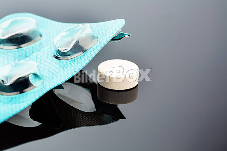 Beschreibung Tabletten in Blisterpackung, Symbolfoto für Gesundheit, Medizin und Tablettenabhängigkeit