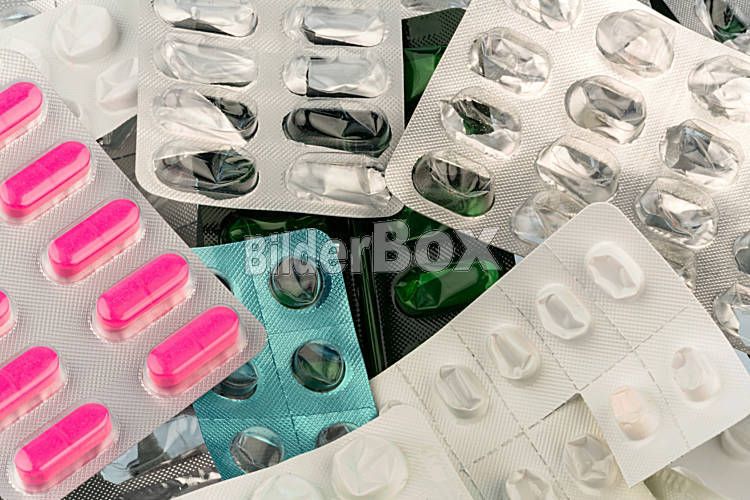 Beschreibung Tabletten in Blisterpackung, Symbolfoto für Gesundheit, Medizin und Tablettenabhängigkeit