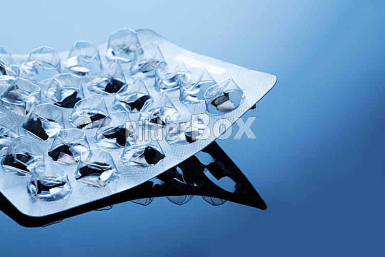 Beschreibung Tabletten in Blisterpackung, Symbolfoto für Medizin, Medikamente und Tablettenabhängigkeit