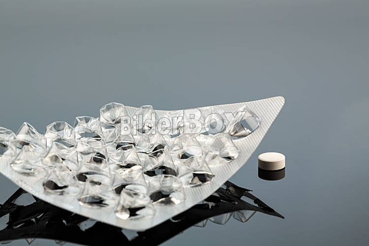 Beschreibung Tabletten in Blisterpackung, Symbolfoto für Gesundheit, Medizin und Tablettenabhängigkeit