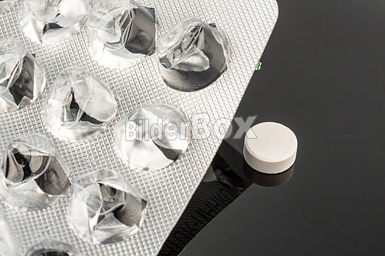 Beschreibung Tabletten in Blisterpackung, Symbolfoto für Gesundheit, Medizin und Tablettenabhängigkeit