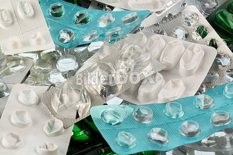 Beschreibung Tabletten in Blisterpackung, Symbolfoto für Gesundheit, Medizin und Tablettenabhängigkeit