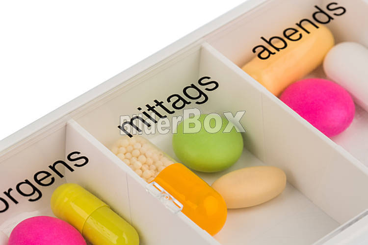 Beschreibung Tablettenspender, Symbolfoto für Therapie, Verordnung und Dosierung