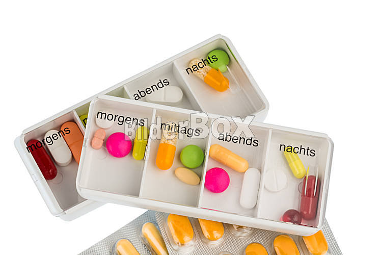 Beschreibung Tablettenspender, Symbolfoto für Therapie, Verordnung und Dosierung