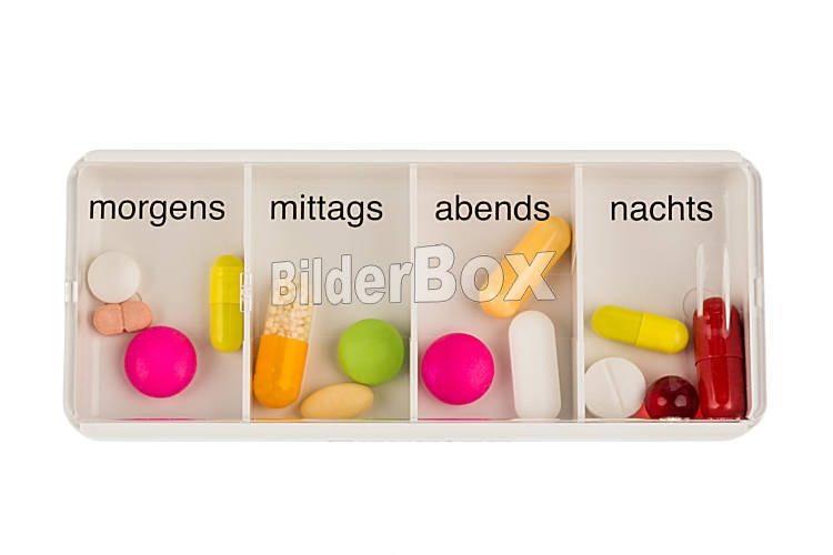 Beschreibung Tablettenspender, Symbolfoto für Therapie, Verordnung und Dosierung