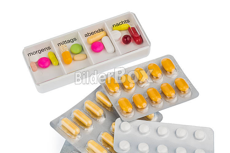 Beschreibung Tablettenspender, Symbolfoto für Therapie, Verordnung und Dosierung