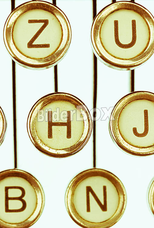 Beschreibung Tasten einer alten Schreibmaschine. Symbolfoto für Kommunikation in früheren Zeiten