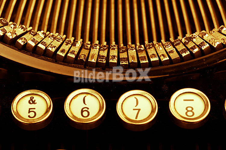 Beschreibung Tasten einer alten Schreibmaschine. Symbolfoto für Kommunikation in früheren Zeiten