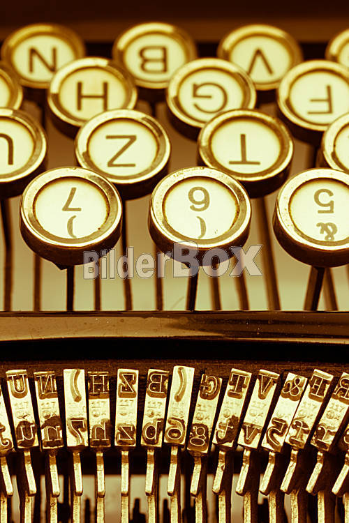 Beschreibung Tasten einer alten Schreibmaschine. Symbolfoto für Kommunikation in früheren Zeiten