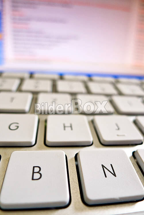 Beschreibung Die Tasten eines Computers in Nahaufnahme. Datenverarbeitung und Internet.