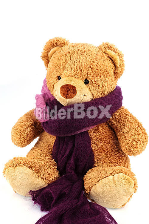 Beschreibung Ein Bär aus Plüsch mit einem Fieber Thermometer im Mund. Symbolfoto für Verkühlung, Grippe und Fieber