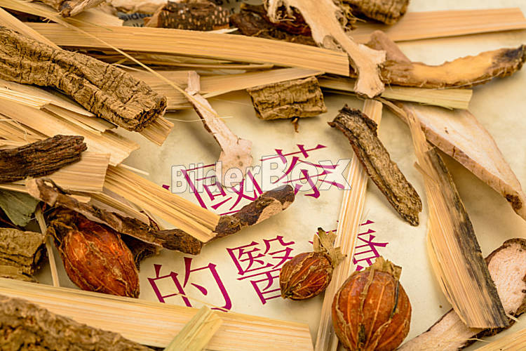 Beschreibung Zutaten für einen Tee in der traditionellen chinesischen Medizin. Heilung von Krankheiten durch alternative Methoden.
